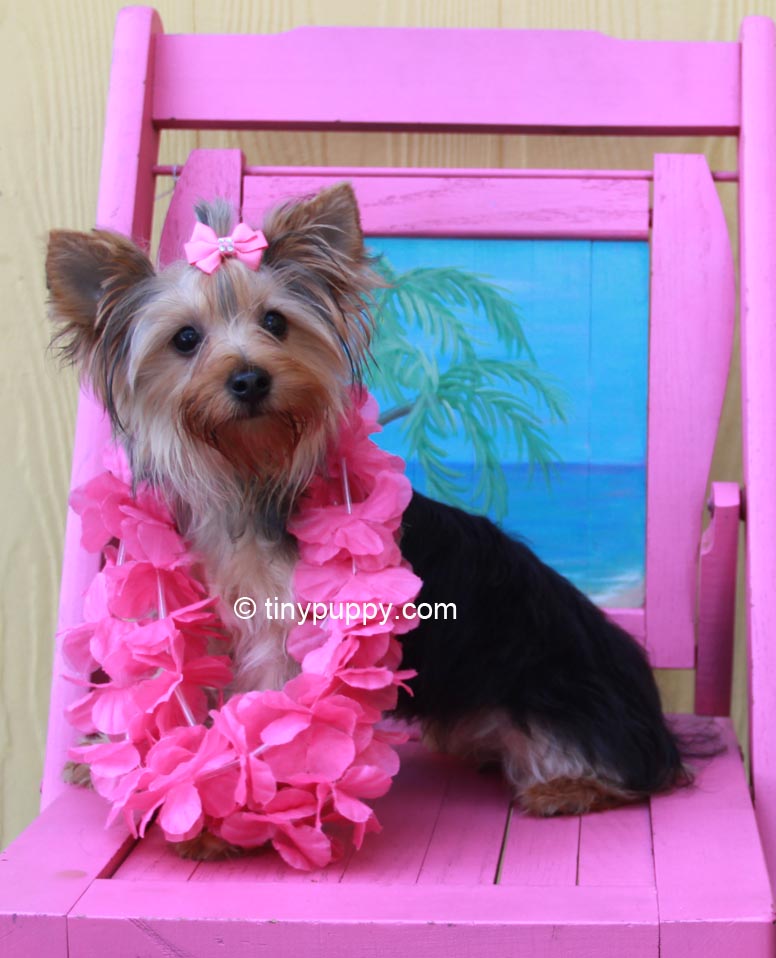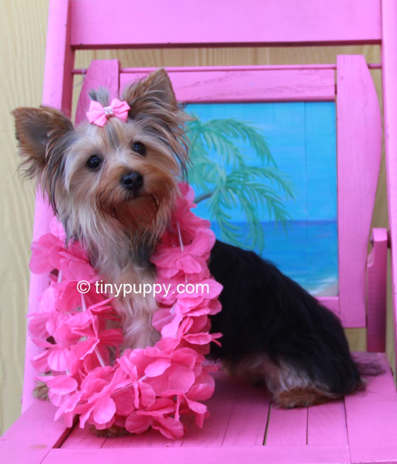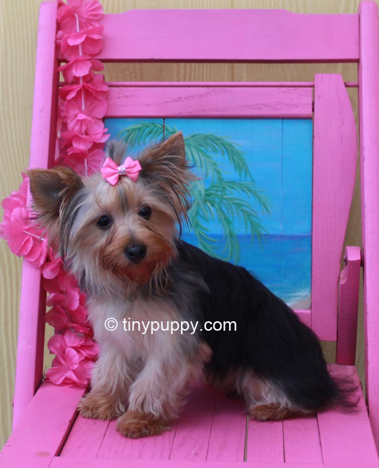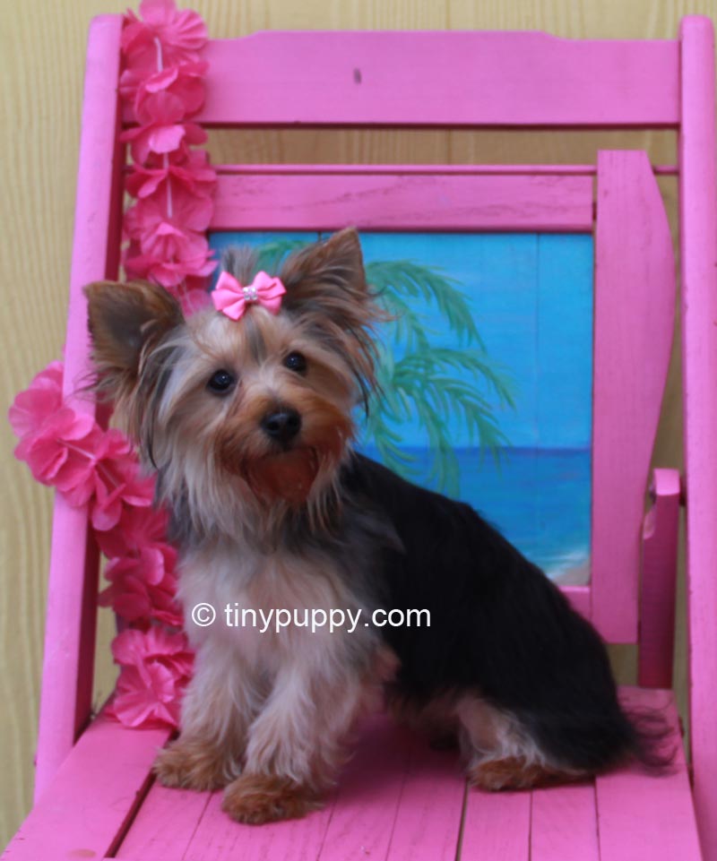 Our Beutiful Tiny Yorkie Denni. Denni weighs only 4 lbs and is almost 8 months old. What a sweetheart. She will melt your heart with love. Denni’s mom is 1/2 parti yorkie. Denni has a very beautiful thick coat and sweet little eyes. She is a little sweetheart who loves to snuggle and nuzzle. She would be a great addition to your family. As you know Yorkies think they are people too. She will be microchipped for her safety.