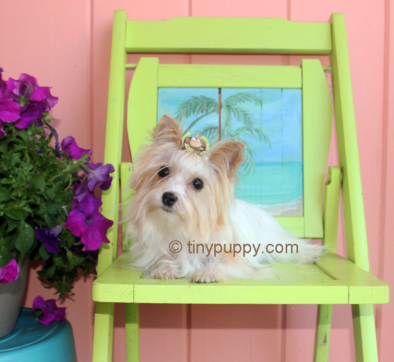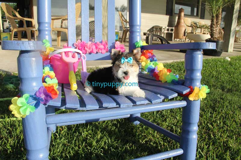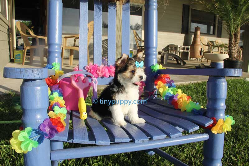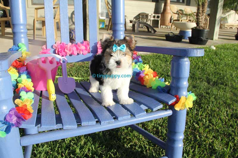 This is Little ACE! He is an ACE out of one of the best deck of cards you’ll ever have a chance to play with! With his fun loving personality and a face that can make you smile on your worst day. Ace is one puppy you don’t want to let go of. He loves to play and can’t help but snuggle when in your arms. ACE weighs 2.4 lbs at 9 weeks of age. His mom and dad are AKC Registered Parti Yorkies with Championship Bloodlines.