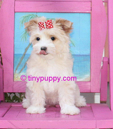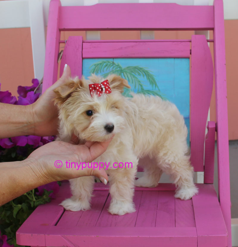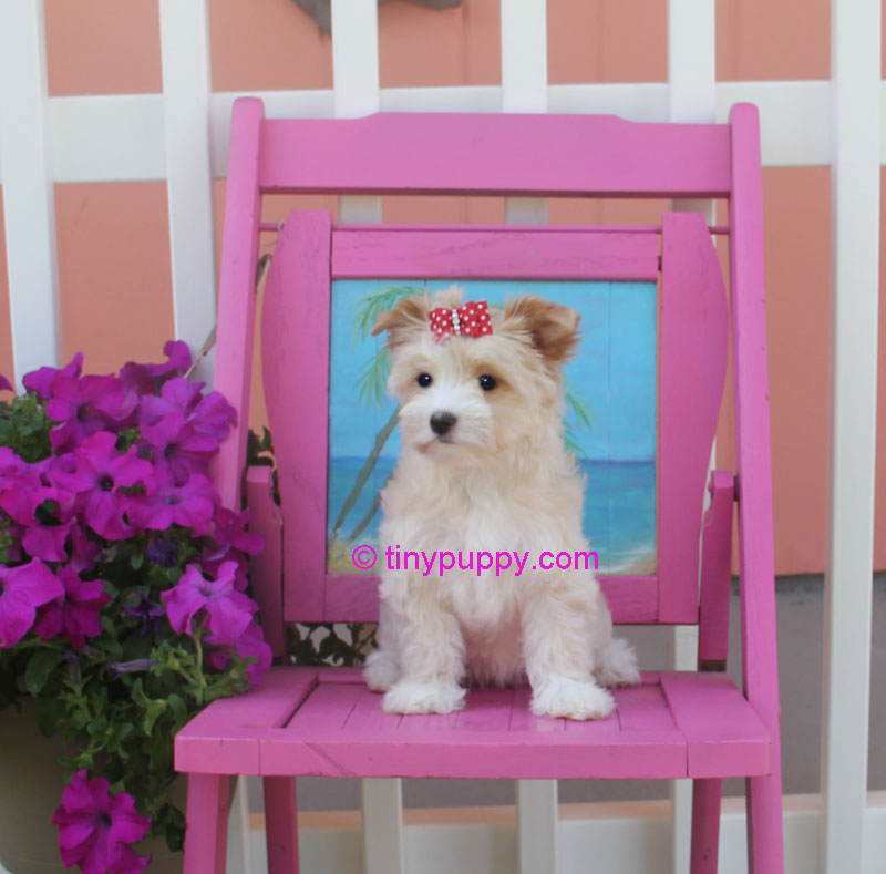 Here she is. Pretty as can be. Our Rare Teacup Gold Dust Yokie Goldilocks. She is 1.8 lbs at 7 weeks of age. Goldilocks has a very thick beautiful coat with a White and Gold tint through out the back. She is a sweetheart that loves to cuddle and loves to play with her sister Buttercup.