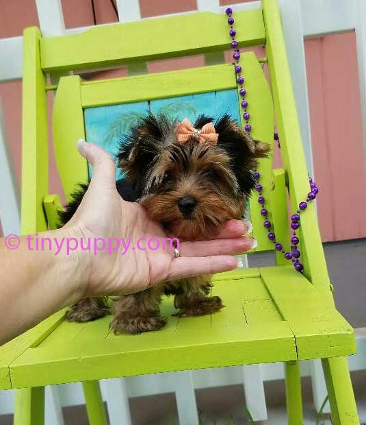 This is Tiny Mindy. Mindy is only 2 lbs at 14 weeks. She has one of the best personalities in a puppy you could ever ask for. Mindy cuddles when you want to cuddle and plays when you want to play. Trust me when I say you just can’t have a bad day when you’re around this little girl. She brightens everyone’s day.