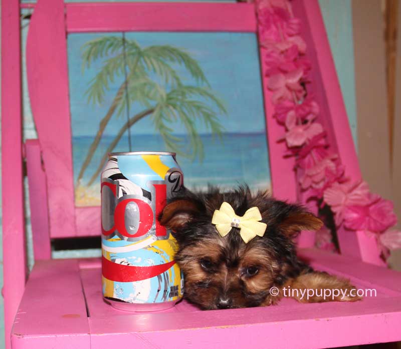 Sweet little Yorkie Lola is just as darling as can be. At 2 lbs and 9 weeks old she will be the perfect little bundle of Joy for your family. She has a wonderful thick black and tan coat just like her sisters. They are all three so beautiful. Her Daddy is a Chocolate Tan (Sable) and her Mom is 1/2 Parti Yorkie. Championship Bloodlines yet she is dark. Just goes to show you how the colors of a Yorkie can be passed down from each generation. Just Darling