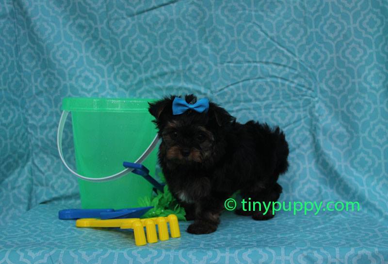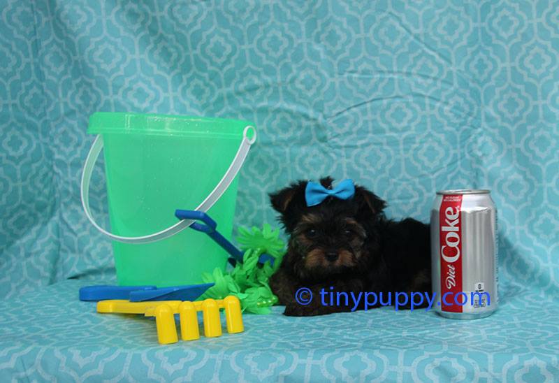 Our tiny little Fynn is as cute as can be. His dark coat will be black and tan when he is all grown up. He is only 1.6 lbs at 10 weeks of age. So so tiny and estimated to be in the 3 lb range. He is a very happy puppy that loves to play with toys and love to give kisses. He is so tiny he will always fit in you pet purse and go everywhere with you. He already is puppy pursed trained and does great in a car or airplane. He is eating hard dog food on his own and ready to come be your little sweetheart.