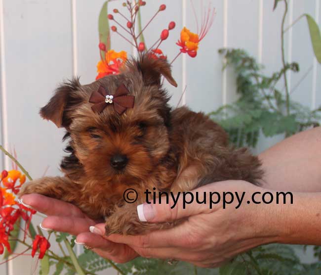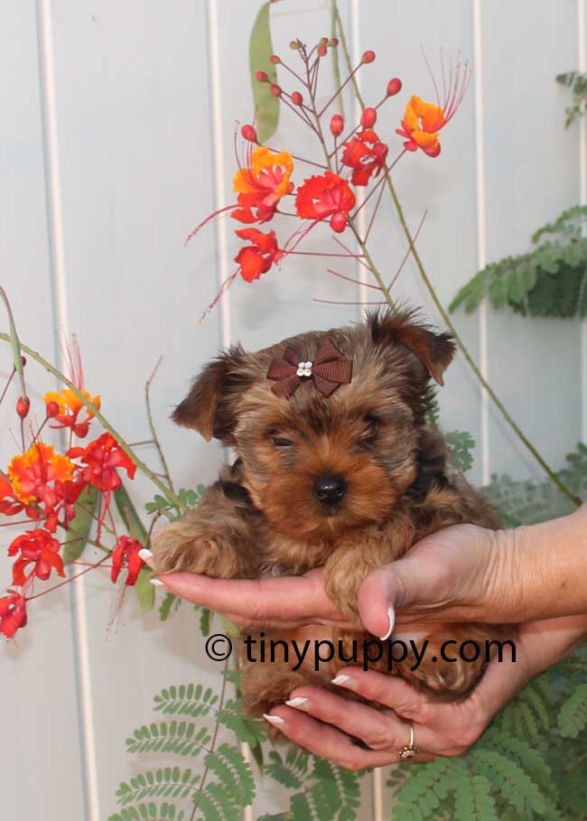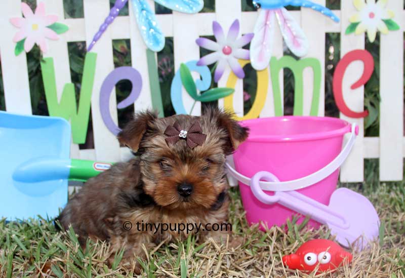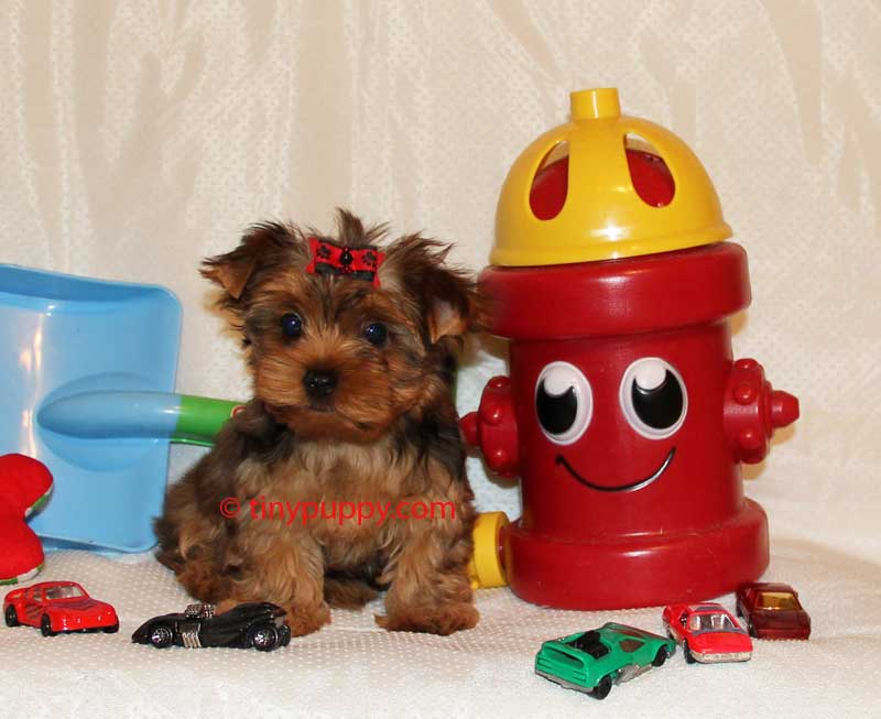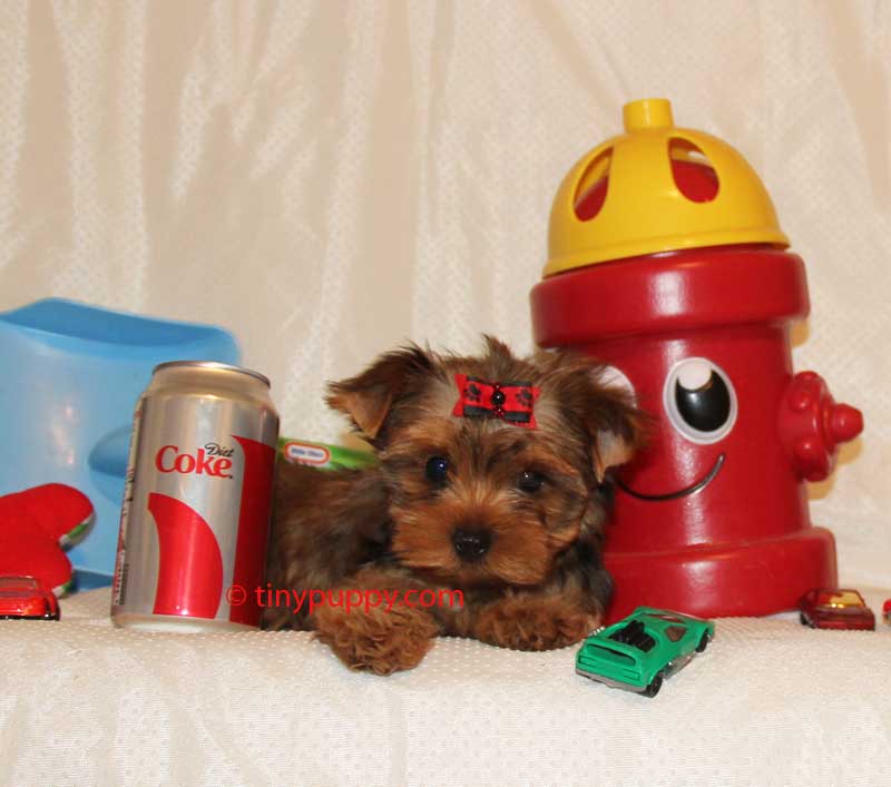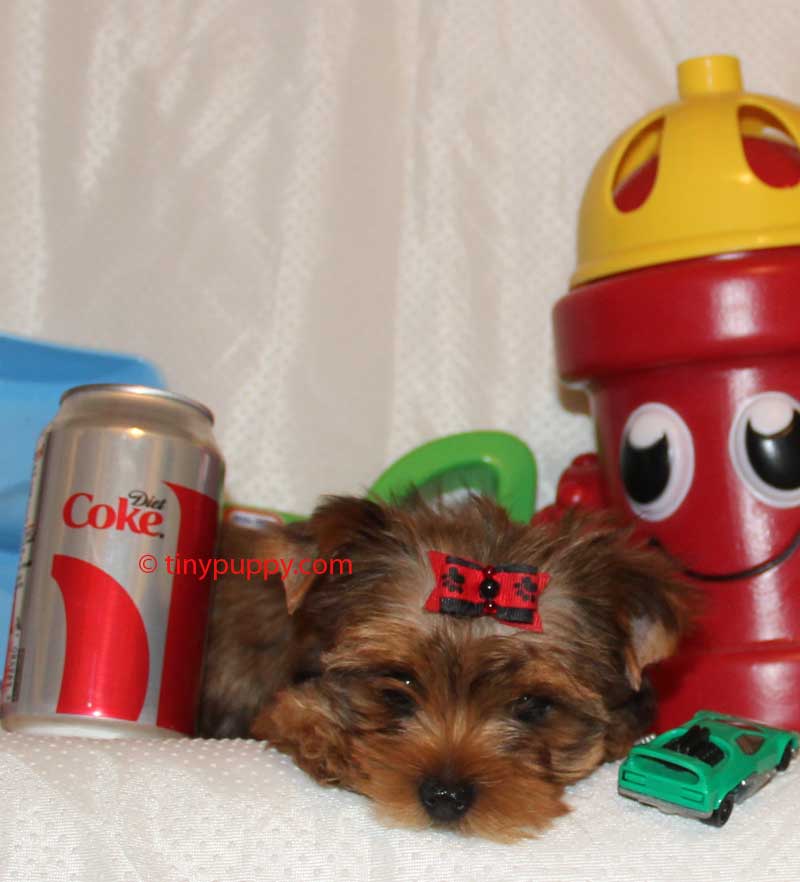 Our Yorkshire Terrier Little Wayne is as cute as a button. He is 11 weeks old and only 2 lbs. He is estimated to be in the 4 to 4.5 lb range. His Mom and Dad both have Championship Bloodlines from the Pastoral lines, just beautiful. Mom comes from the Pastoral lines. He loves to play with squeek toys and with his sister Tillie. They are both the color of Daddy but have Moms beautiful eyes. Little Wayne is named after his Mom’s Owner. Nautica and Wayne are buddies. Just Darling.