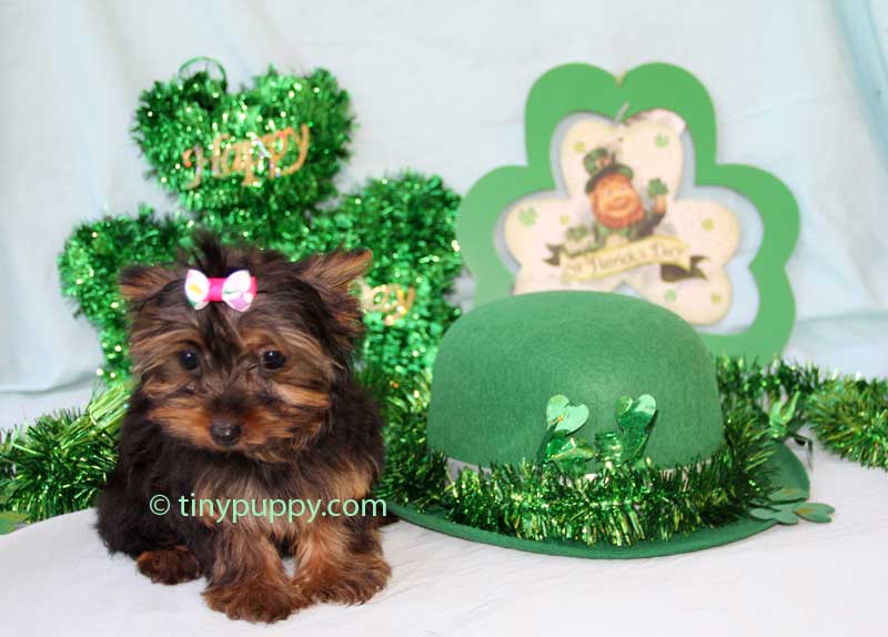 Sweet little Valentine Yorkie is sure to win your heart. Weighing only 35 oz at 15 weeks, she is extra tiny. Our little Maci teacup yorkie is a precious little gem and a real snuggler. She will steal the heart of everyone and look both ears are almost up. She will be tiny and gorgeous. Family loved and Family raised. This beautiful little girl has Championship bloodline on the mother’s and Dad’s downlines. She is ready now to come and be your tiny sweetheart.
