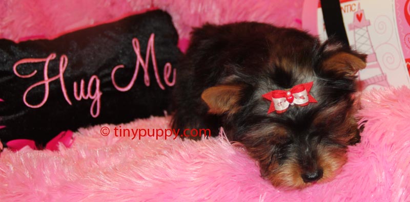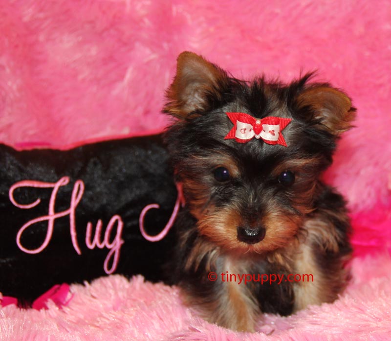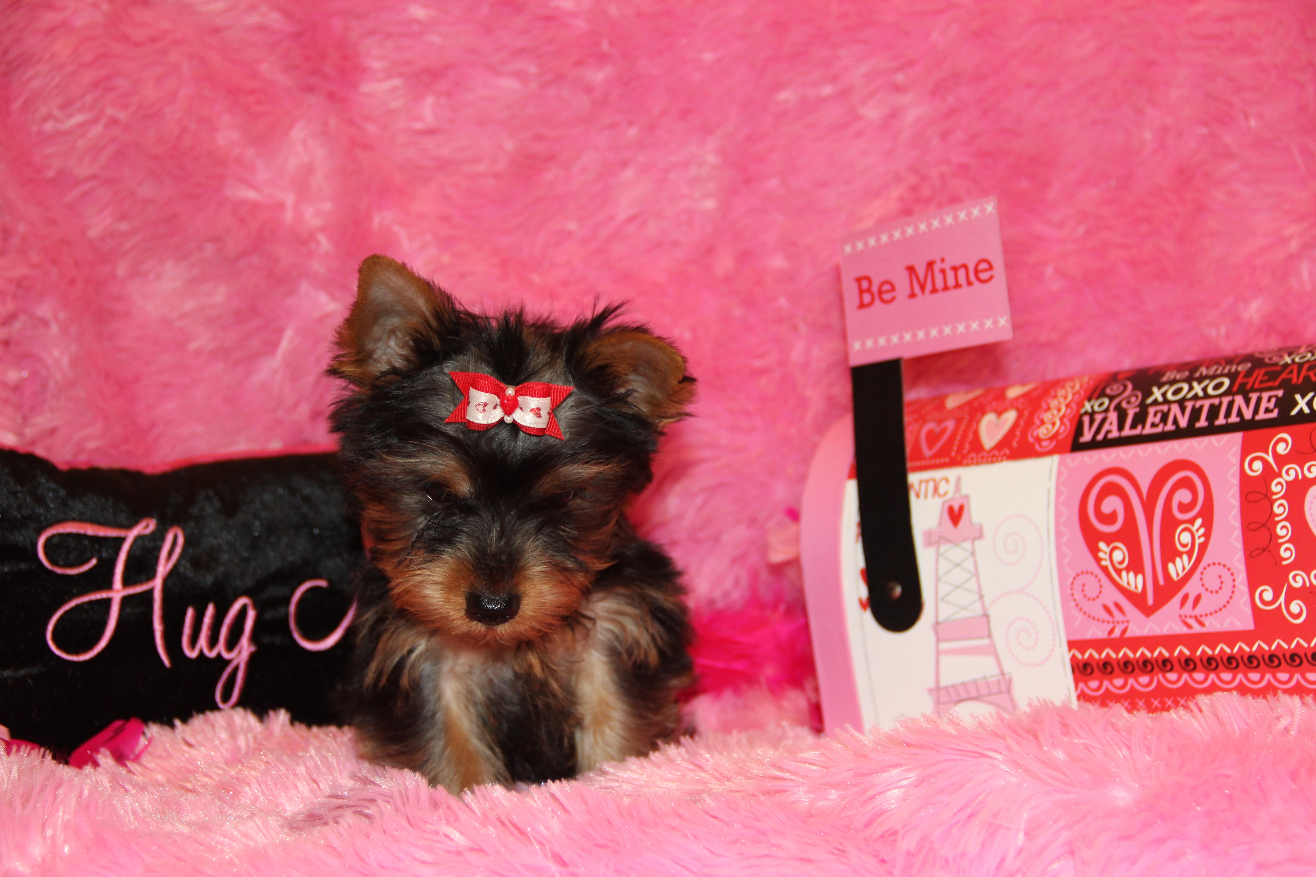 Little Yorkie Hope is as cute as can be. She weighs 4 lbs at 16 weeks old. She has a sweet little face. Hope loves her brothers and sisters and loves to play with her little teething toys. She is pottie pad training and doing great. What a little doll. Hope is ready for Valentine and shows you her Valentine love every day. She loves to give lots of kisses away.