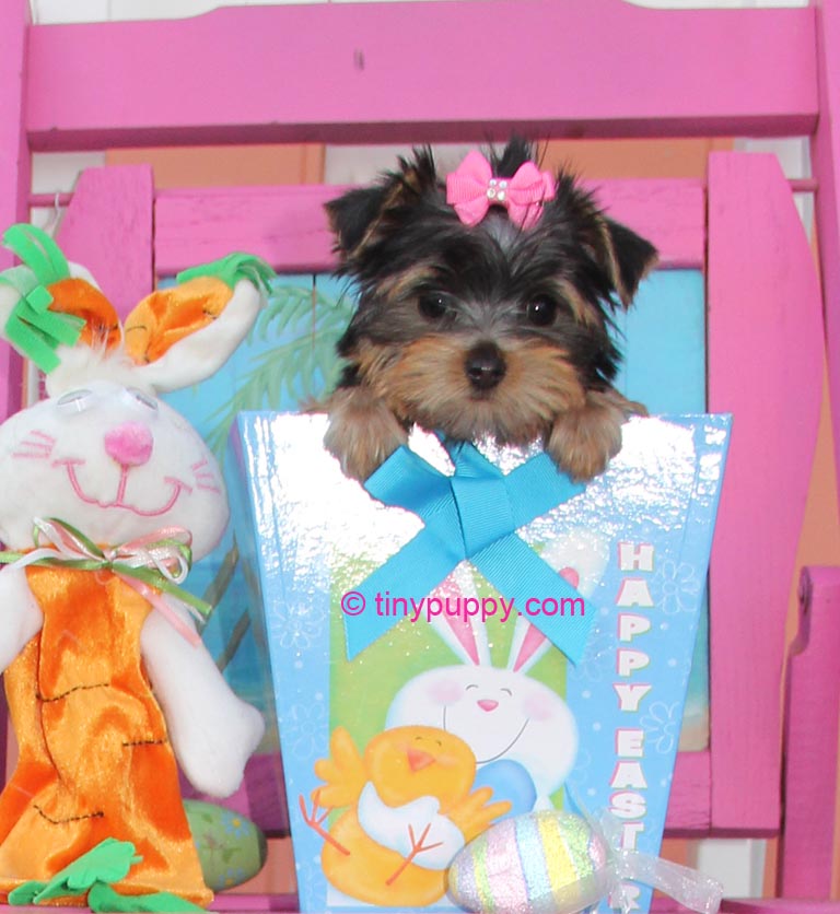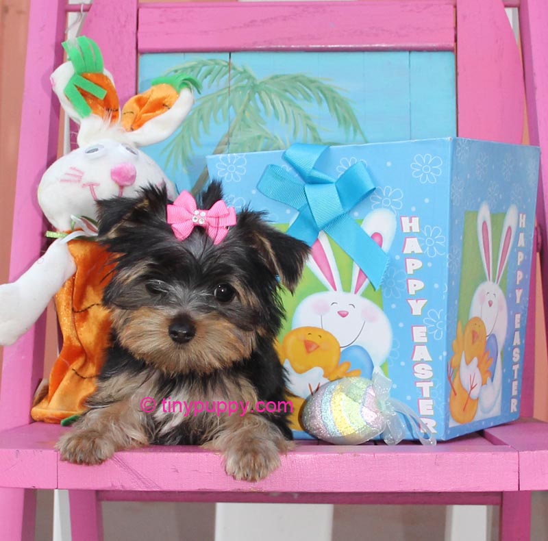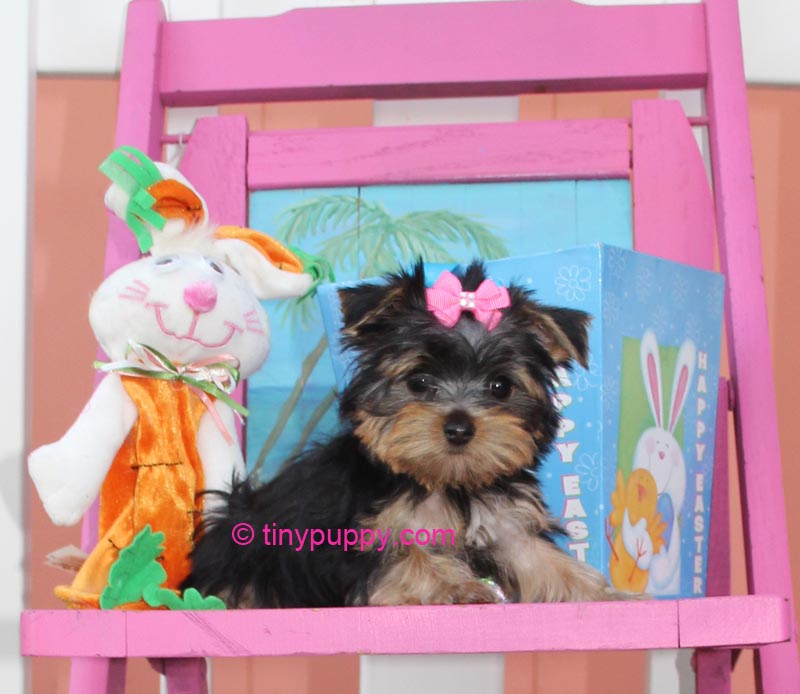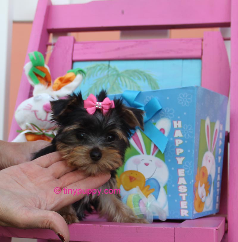 Pixie is one of those special little teacup Yorkie girls that is just full of love. She is 12 weeks and weighs 1.6 lbs. She is very smart and already fetching a ball. It is so cute. Brings it back every time. Pretty good for a tiny yorkie. Shes a cutie that knows how to flaunt her charms to get what she wants. This little girl has spirit.