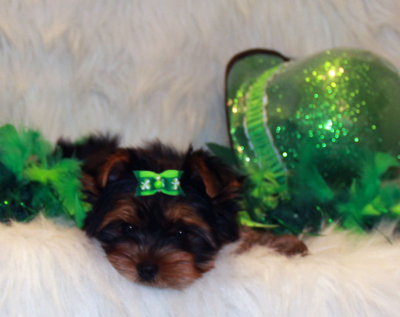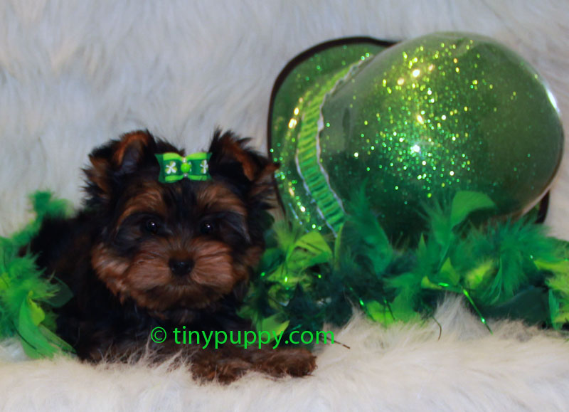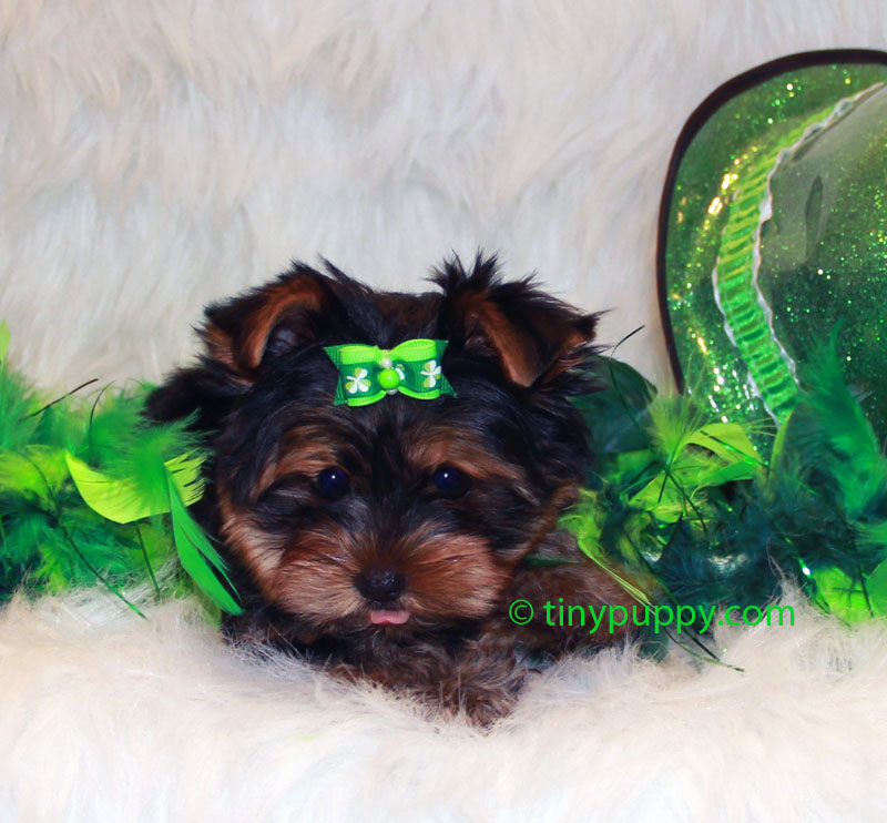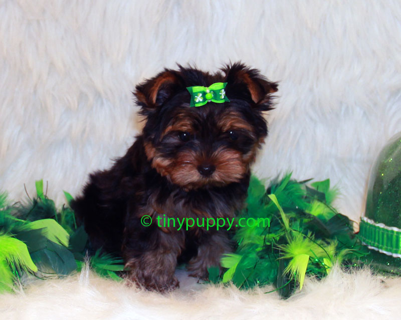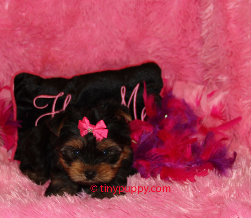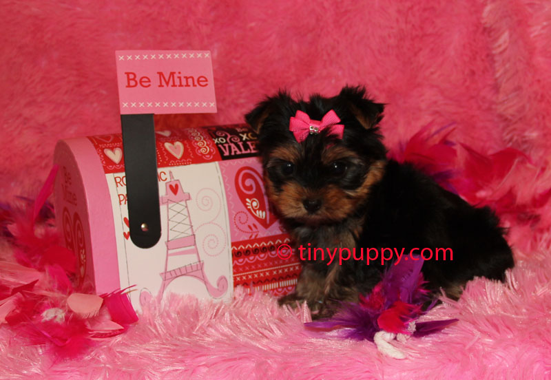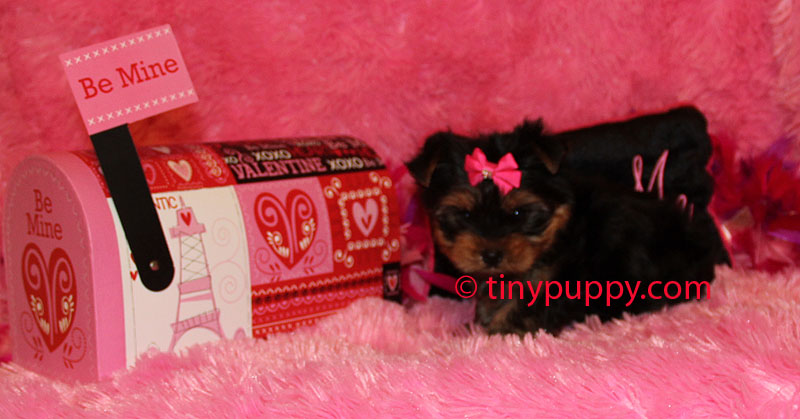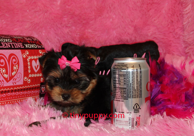 Teacup Yorkie Sweetheart will melt your little heart. She is sweet as a can be. Sweetheart weighs only 1.6 lbs at almost 11 weeks of age. What a tiny little girl. She is charting to be around 3.5 lbs full grown. Very Black and Tan and a beautiful thick coat. This little girl will make your sweetheart very happy.