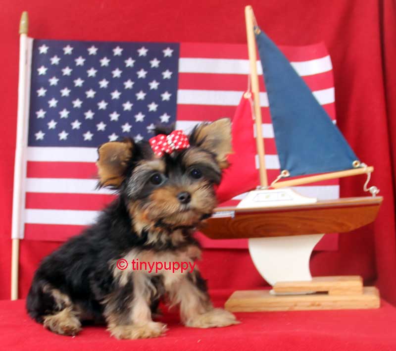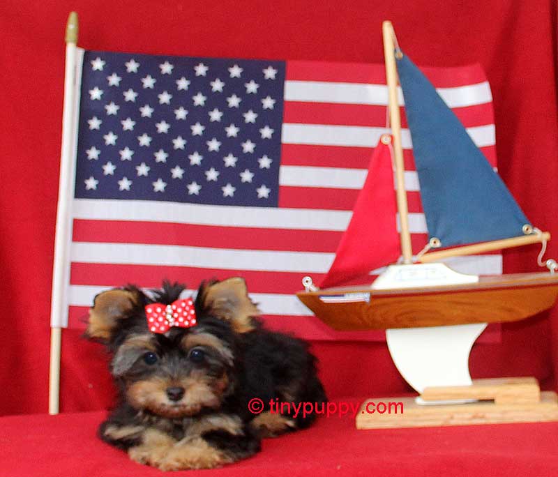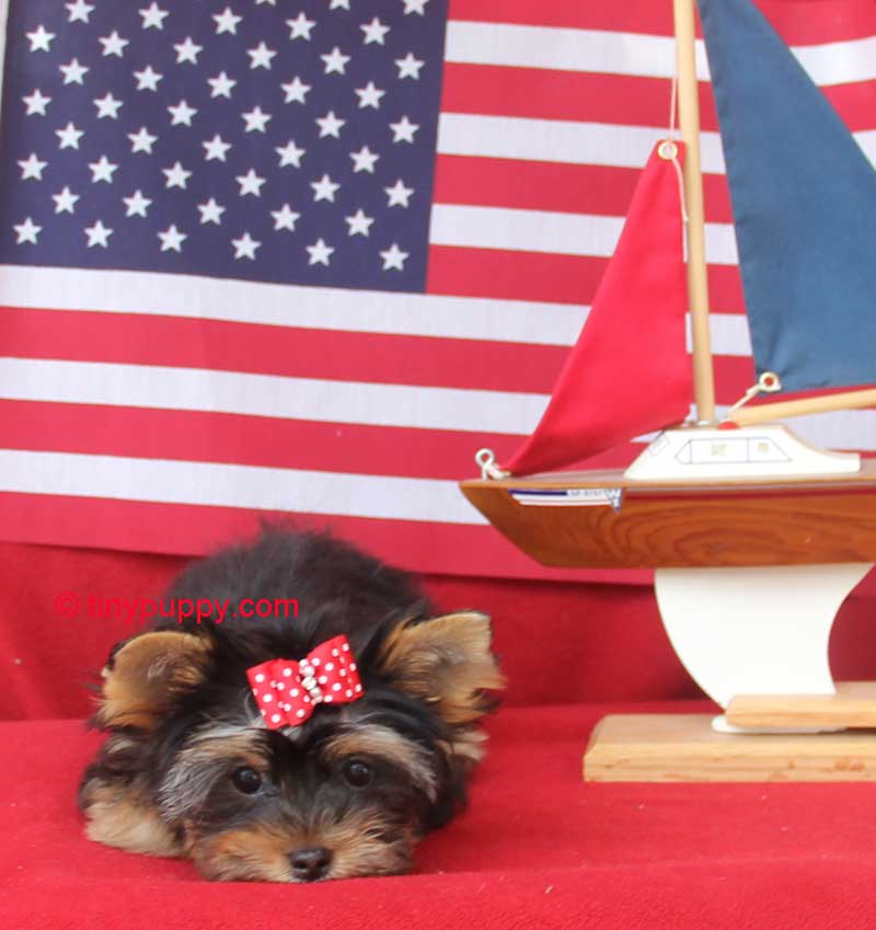 Teacup Yorkshire Terrier Mary Jane! She is AKC 1/2 Parti and 1/2 blue gold with Championship Bloodlines. She melts your heart with her gorgeous looks and loving personality. She is VERY friendly with everyone she meets. Loves to play with her little toys. Mary Jane’s Mom is just 4.8 lbs and her Daddy is 2 3/4 lbs. She is ready now to come be your forever sweetheat.