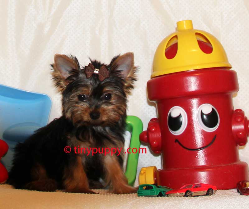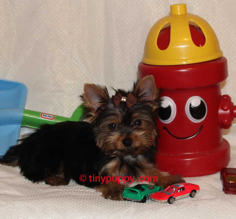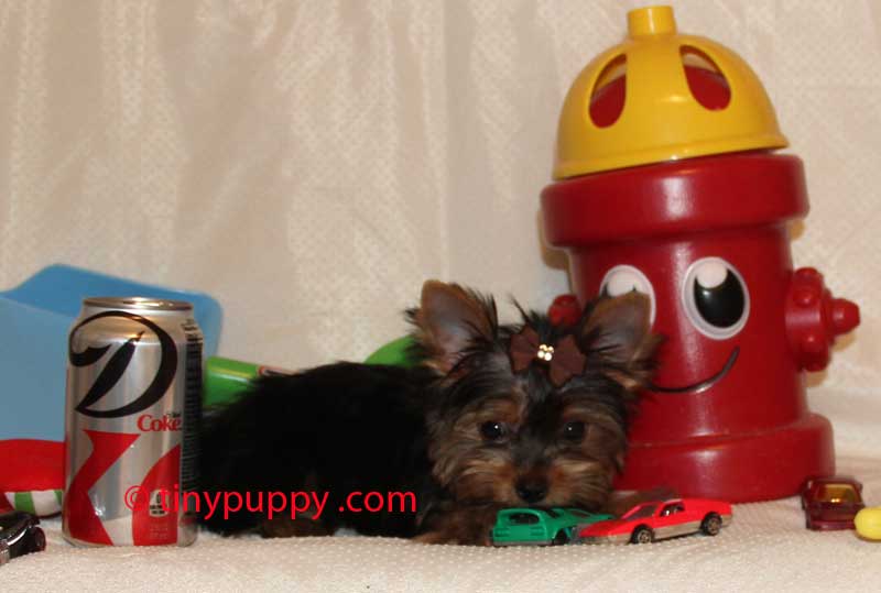 Tiny Little Yorkie Nickey is only 2.9 lbs and over 4 months old. His Daddy Sailor is just 2.75 lbs and his Mom is small too. He is as cute as can be and loves to play with his 2 brothers. He will be that sweet little baby you can take everywhere with you. Championship Bloodline. We estimate our little Yorkshire Nickey to be in the 3 TO 3.5 lb range full grown. What a doll.