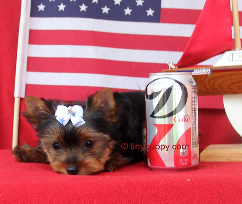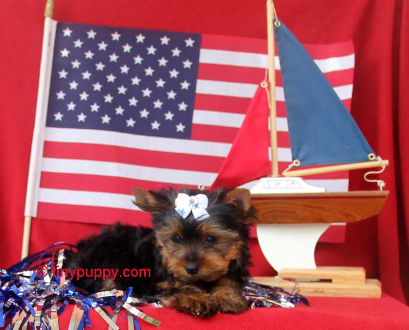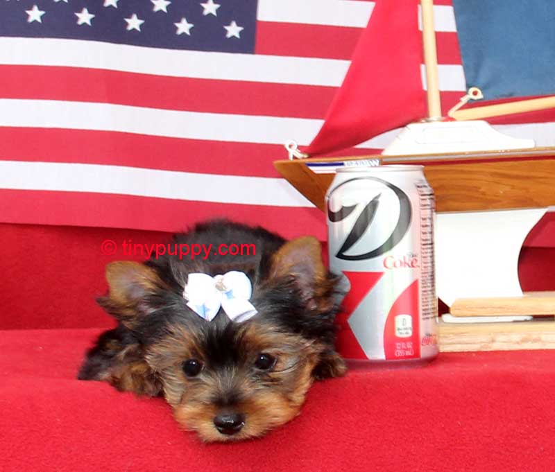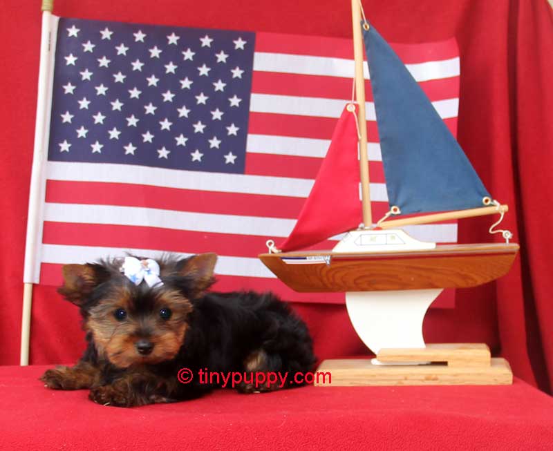 Little Tiny Yorkie Pebbles is as cute as can be. She is just 2.8 lbs at 16 weeks of age. She is happy and healthy and loves being held. Her Daddy is an APRI Champion. She is just as beautiful as both her parents. Pebbles is estimated to be around 4.5 lb s full grown.
